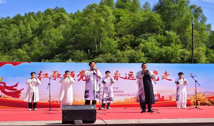 回顾历史,我们铭记在心;展望未来,我们信心满怀。在新的历史征程上,我们高举中国特色社会主义伟大旗帜,以热烈的掌声和歌声,向党的生日献礼!7月1日,公司党总支组织师生党员赴甘谷县古坡镇举办以“红歌颂党恩,永远跟党走”为主题的助力甘谷文旅高质量发展文艺演出活动,热烈庆祝中国共产党103岁华诞。公司党总支书记谢克,副书记副经理陈海、副经理杜新平及公司师生近60余人参加活动。